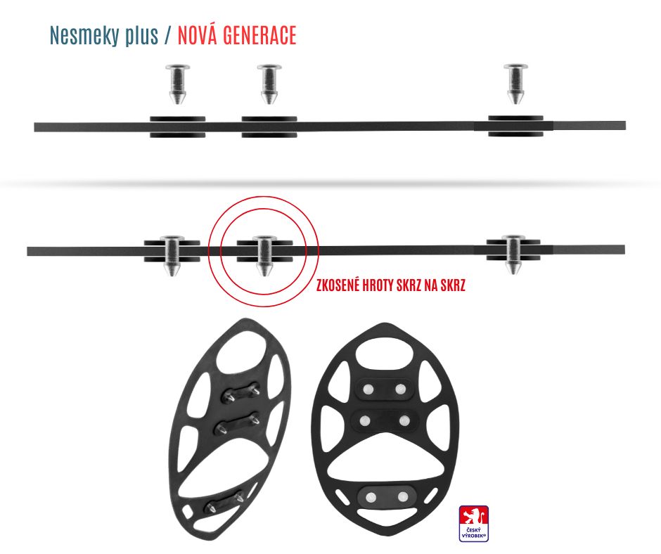 Naše NOVÁ GENERACE Nesmeky Plus využívá systém, který zajišťuje naprostou pevnost hrotů bez možnosti jejich vypadnutí.